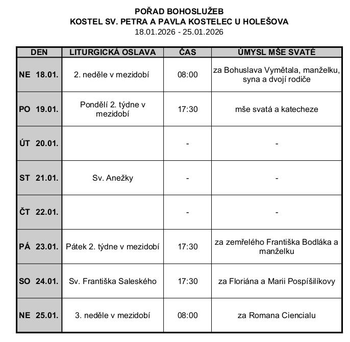 | Sobota | 17:30 | 18:00 |