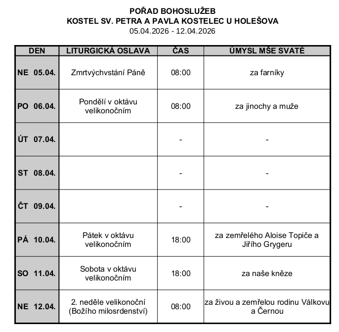 Program bohoslužeb
