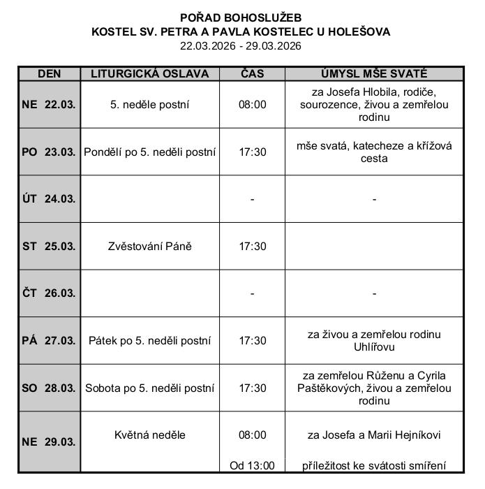 | Sobota | 17:30 | 18:00 |